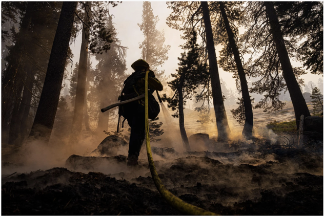 What I like about this photo is that it’s taken from a low angle of a firefighter. At first glance, it looks like he has already put out the fire, but in reality, he’s spraying to make sure it doesn’t spread.