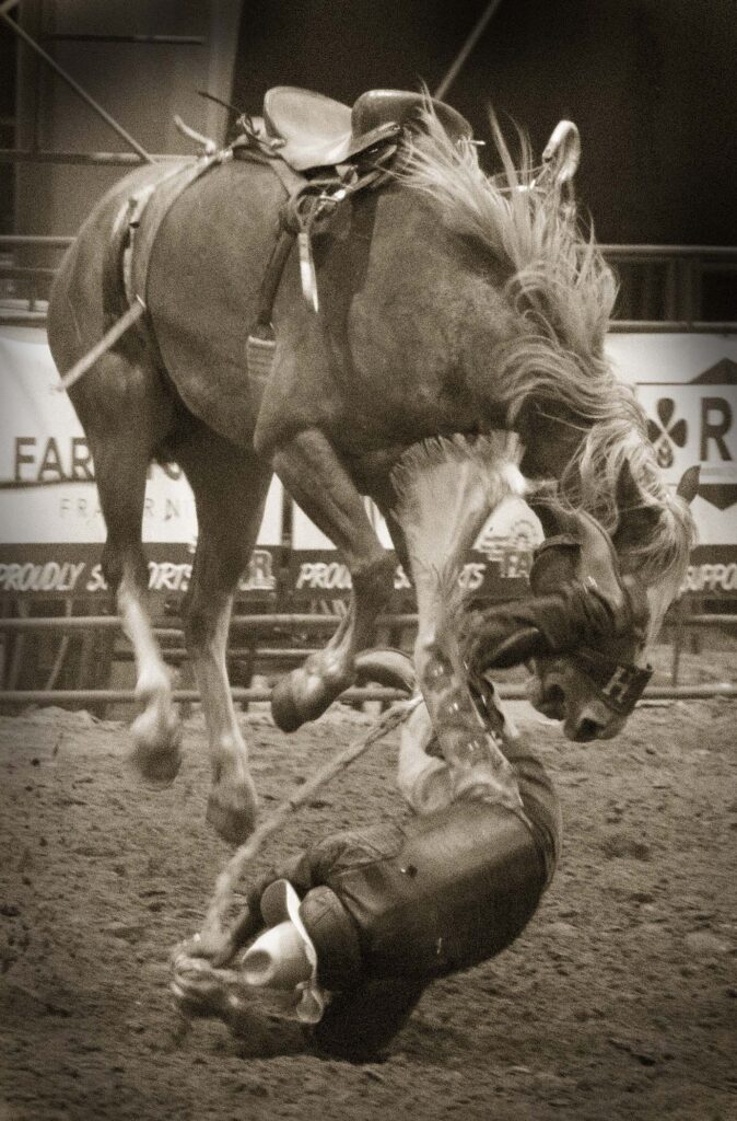 Bronc rider Cody Etsitty from Tempe, AZ hits the ground.